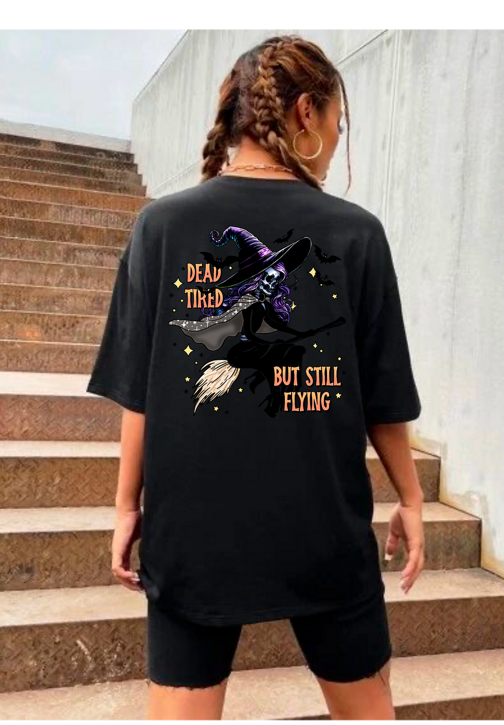 Dead Tired But Still Flying T-Shirt, Halloween Witch Shirt, Tired Hoodie, Spooky